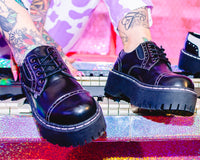 Chunky soles? We’re in. Has a black upper made of our high quality TUKskin™ material — polishable synthetic faux leather that is both soft and breathable. Has a platform height that stands at 2” with screws in the sole for extra allure. Comes with removable memory foam insoles for added comfort.