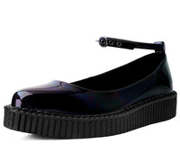 Slip into our Black Spike Pointed Ballet Creepers and you'll be ready to rock 'n' roll! Made of black faux suede, these shoes have our classic mary jane cut with a little extra edge thanks to their silver spike detailing. Sits on top of a low sole creeper platform that measures 1 ¼” at the heel and ¾” in the front. Has removable memory foam padding for added comfort.