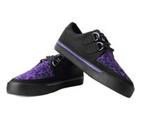 Rock your style in these timeless creeper sneakers. Get ready to hit the stage or the streets in these vulcanized sneakers that re-imagines our former creeper sneaker silhouette with bold & modern twists. Features a vegan black twill upper & purple leopard faux fur with classic D-rings iconic interlace detailing along the front. The fun animal print gives an extra dose of rock n' roll that looks great on guys & girls alike!