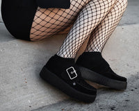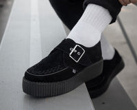 Classic Rock N' Roll. This creeper features our classic black suede upper with a silver buckle strap and black interlace. Has lightweight VIVA mondo sole that is approximately 1 ¾” at the heel and 1 ¼” in the front. Has removable memory foam padding for added comfort.