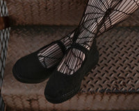Let's get spooky. This Mary Jane features a classic buckle upper with a mesh material and black embroidered spiderweb design. It sits on our Viva Low sole with a low platform height that is approximately 1 ¼” at the heel and ¾” in the front and is made of a mixture of EVA and rubber that contributes to the sole’s bendability.