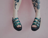 Emerald Metallic 3-Buckle Mondo Sandal