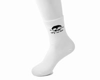 The perfect solemate to your fave pair of creepers. A classic white crew sock featuring our iconic T.U.K. black skull logo on the sides.